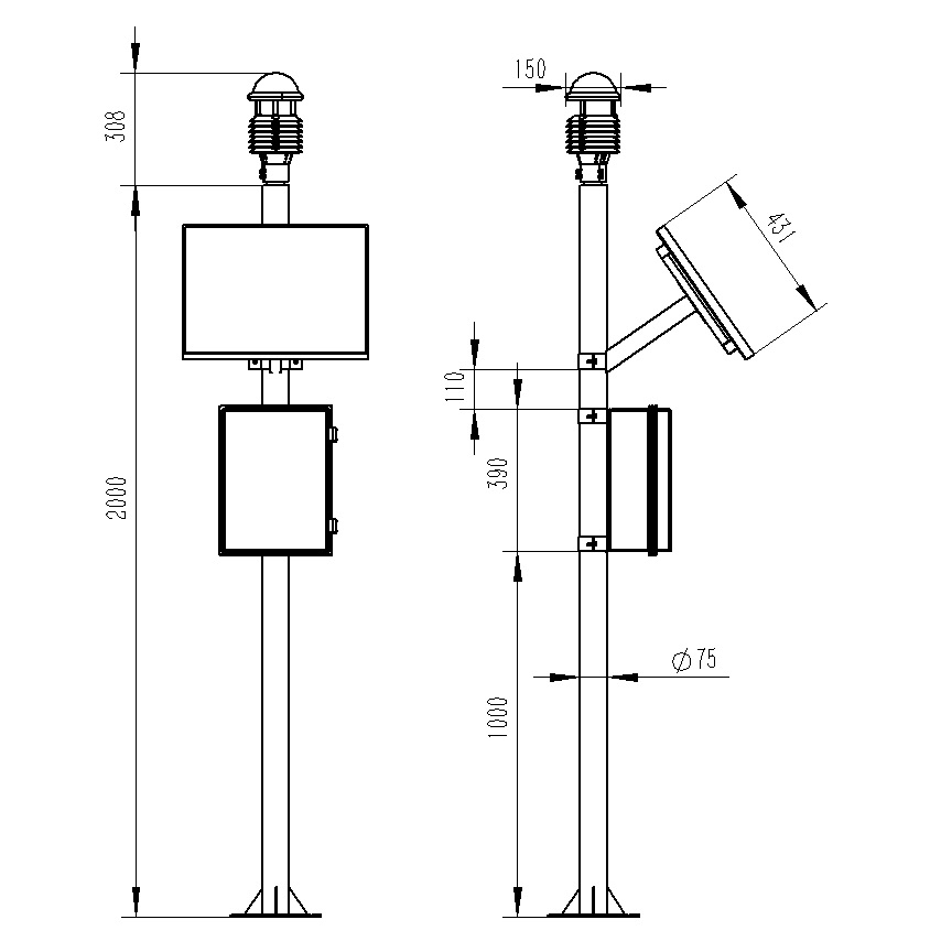 5.兩米碳鋼支架,頂部無需法蘭盤可直接套接傳感器
